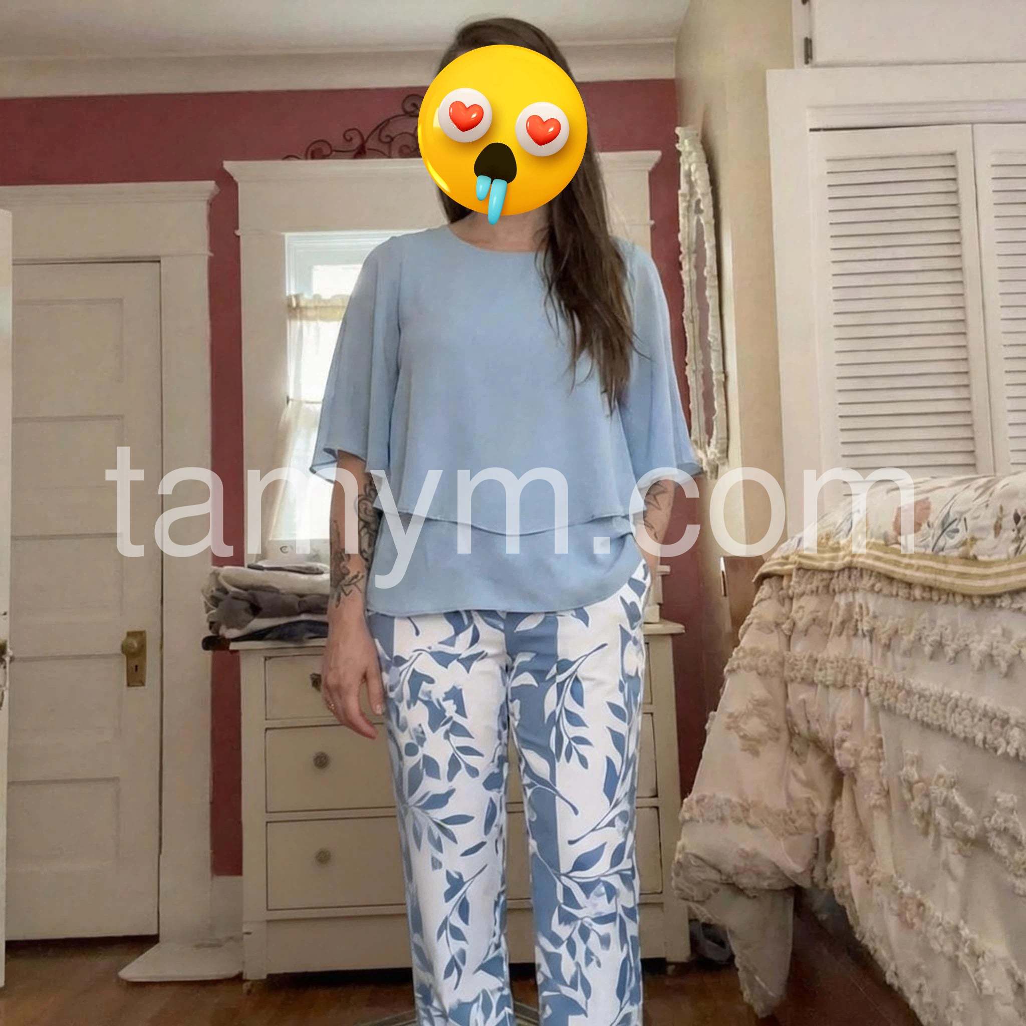 Blue 3/4 Sleeve Two Piece Set