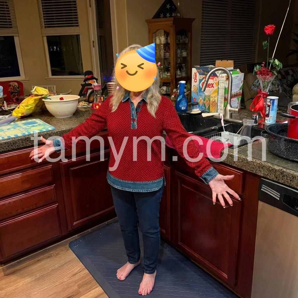 Showy Denim Patchwork Long Sleeve Knit Sweater