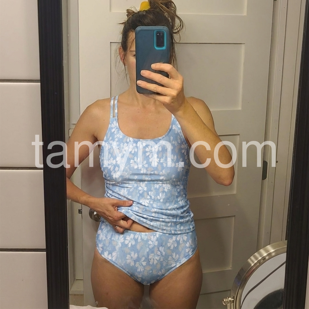 This fits exactly as expected. The colors are so cute together. The top was a great cut. The suit looks exactly like the picture. Colors are vibrant! I felt comfortable with the padding wasn’t overwhelming, but I felt covered.