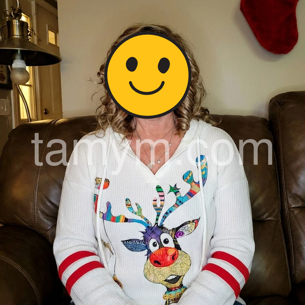 Bring in the winter season with this holiday-ready reindeer top. A white cozy ribbed top with red stripes and colorful reindeer print make this hoodie a cheerful complement to your day or night with its relaxed vibe.  A plunging v-neck and buttons on the front give it the perfect amount of detail and chic fit.